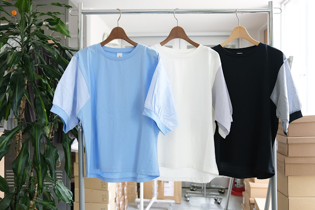 袖裏に忍ばせたゴムが、造形的なシルエットを生み出す、5分袖ブラウス。