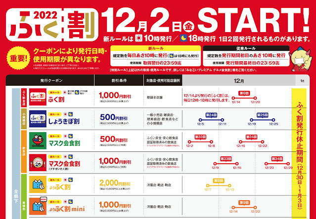 【ふく割】・【しょうきぼ割】・【ようふく割】・【ようふく割 mini】・【えちぜんし割】の5種類のクーポン。